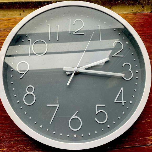 White, light weight, wall clock, 12 hour format, battery operated