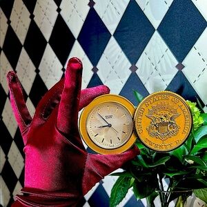 Clock Collectible US Presidential Seal Gold Coin Lid- SEIKO Quartz Alarm Vintage