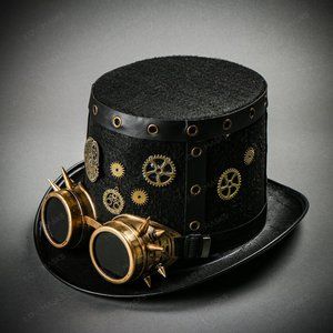 Unisex Men & Women Party Festival Steampunk Top Hat with Goggles