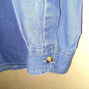 American Flag Denim button Shirt Patriotic Red White Blue Womens Size Large