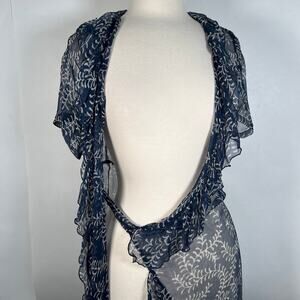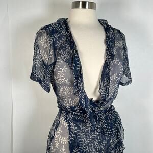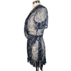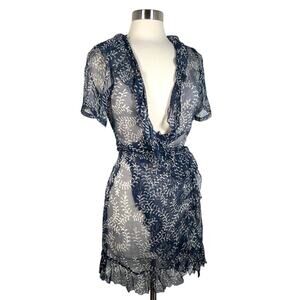 Cloe Cassandro Silk Printed Sheer Mini Wrap Dress Cover Up OS Ruffles Beach