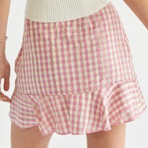 Cloe Striped pink Gingham Flippy Ruffle Skirt