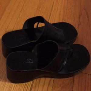 Black chunky heel clog, open toe