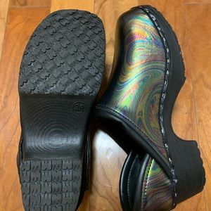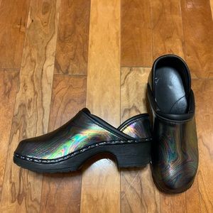 I think I wore them twice and they are too big- marked 38 but on site from the maker it said to order bigger size due to running smaller so I think they were wrong as I’m 6.5-7 and 37 in dansko clogs and those are too roomy. Great condition and very soft and comfy!