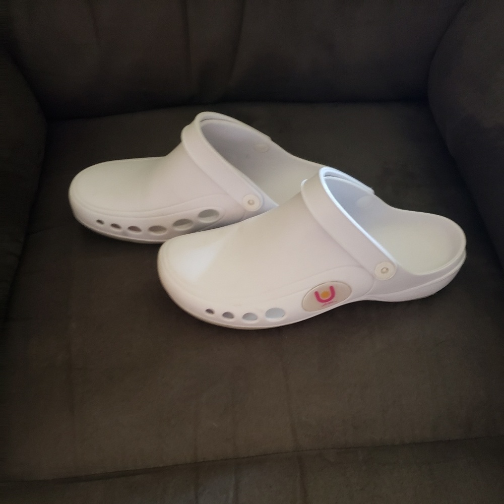 White Urbane clogs. Only wore couple of times before we moved and I am not working now. Very comfortable.