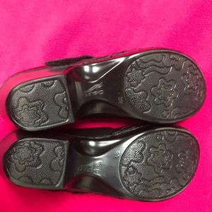 Black leather Dansko clogs with Velcro closure