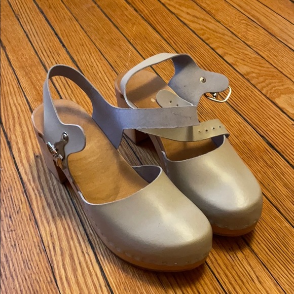 These clogs have never been worn! They are too high for me. Medium heel. Bought on Etsy.