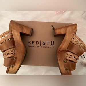 Bed Stu Clog Sandals! Bought them and they are too small. I did wear them once hoping the 1/2 size didn’t matter. They are a true 5.5. No wear! See pics