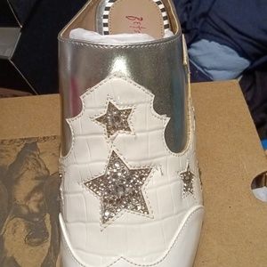 Betsy Johnson NWT beautiful & shiny white n silver pair of clogs. very nice just a lil too small for me. sz 81/2