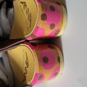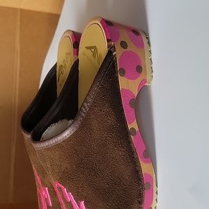 NWOT clogs wood soles and suede upper new never worn. They are monogrammed but still very good condition.