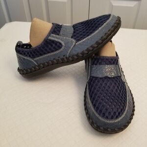 Clohoo Blue Leather Breathable Mesh Hand stitched Comfort Shoe M Size 8.5 W11 Lightweight Slip on