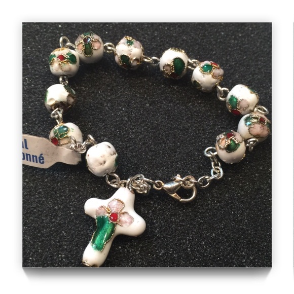 Cloisonné cross charm bracelet. Measures approximately 7 1/2" long. Bought in Rome, Italy. New and never worn.