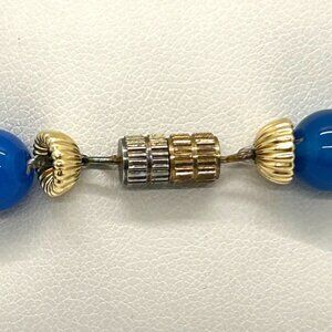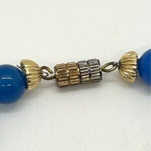 Cloisonné Floral Bracelet With Blue Glass Beads Gold-Tone Accents & Screw Clasp
