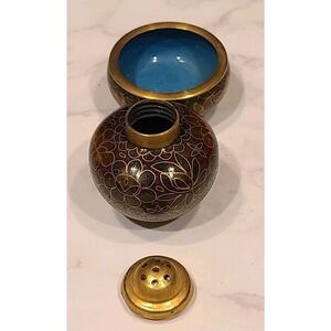 Cloisonné Open Salt Bowl Cellar Pepper Shaker Flower Enamel Brass Stacking Brown