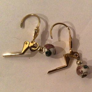 4.7625 mm cloisonné round dangle earring with gold tone lever backs. 7/8” long.