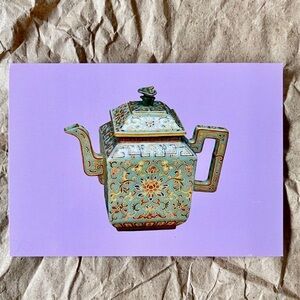 Rectangular Teapot with Passionflower Motif, Ch’ing Dynasty (1644-1911 A.D.). National Palace Museum, Taipei, Taiwan, Republic of China. This postcard is a work of art itself, with tons of bright colors and high quality printing on thick paper. They could also easily be put in a frame and turned into works of art around the house.