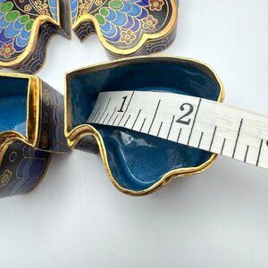 Cloisonné Vtg Brass Butterfly Trinket Box Blue Green Black Gold Tone Chinese