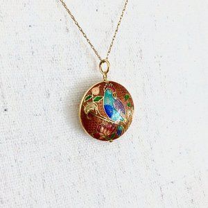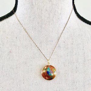 Cloisonné pendant w/ VINTAGE 12K Gold-Filled chain