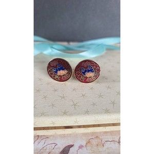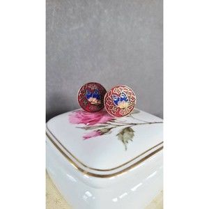 These are a pretty pair of vintage cloisonne butterfly clip-on earrings.