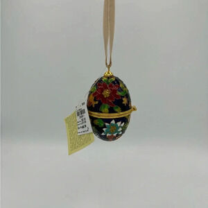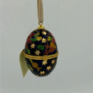 Cloisonne Egg Enamel Trinket Box Christmas Ornament Gold Tone Clasp Floral NEW