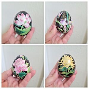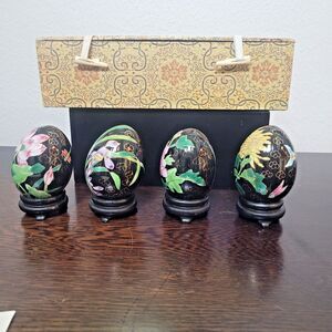 Cloisonne Eggs 4 pc Chinese Butterfly Floral Porcelain w Stand Smithsonian VTG