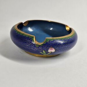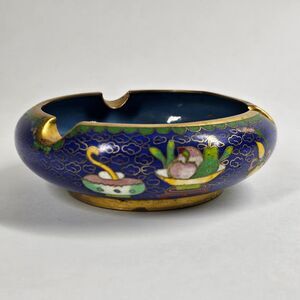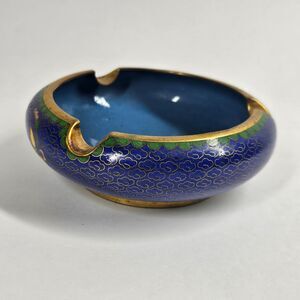 Vintage cloisonne enameled ashtray. Made of brass with beautiful enameled design, primarily in shades of blue. Nice shape, no dents or chips. Some surface wear from handling.