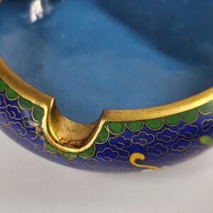 Cloisonne Enameled Brass Ashtray Vintage Blue