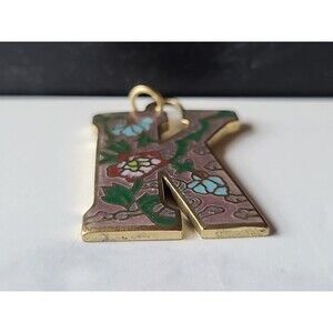 This is a vintage cloisonne floral letter "K" shaped pendant.