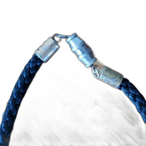 Cloisonne choker style necklace, florals on black, black cord, barrel fastener, length 14" to end of Pendent 15", in good condition.