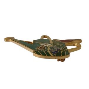 Cloisonne Watering Can Cardinal Brooch Pin Red Bird Gold Tone Enameled Gardening