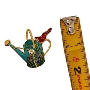 Cloisonne Watering Can Cardinal Brooch Pin Red Bird Gold Tone Enameled Gardening. Condition is pre-owned with no chips or cracks. Measures about 1.5" tall. No wear apparent to gold tone. Unbranded. Please see all photos for detailed condition.
