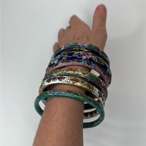 Large blue one has a hinge that someone glued together so it funcions as a true bangle