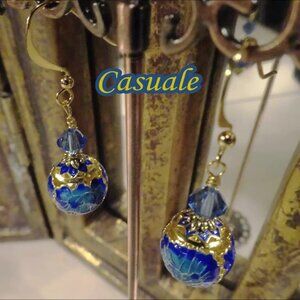 Cloisonne Scelte Blu - Cloisonne is a French word designating an ancient technique for combining metal and glass to make stunning fashion jewelry. Choose your earrings from an array of blue styles with gold finish, topped by Austrian crystals: Casuale, Frivola, Chiaroscuro, Corona, Festa, and Uccello (please specify). Available in hooks or leverbacks (please specify).