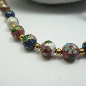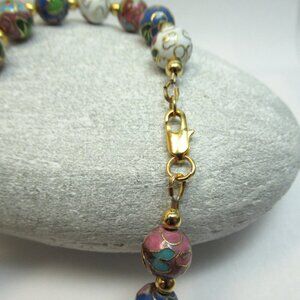 This listing is for the pink, blue and white Cloisonne and 4mm gold plated bead necklace pictured. It is 16 inches and has 30 smooth vintage Cloisonne beads. It is finished with a Gold plated Lobster claw clasp. This necklace is new and unworn.
