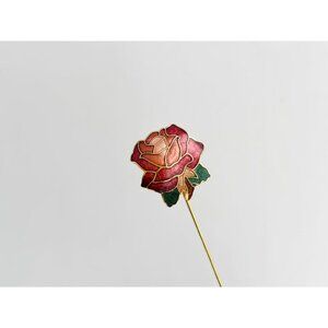 Cloissone Floral Rosebud Vintage Gold Toned Oval Vintage Stick Pin | Hat Pin