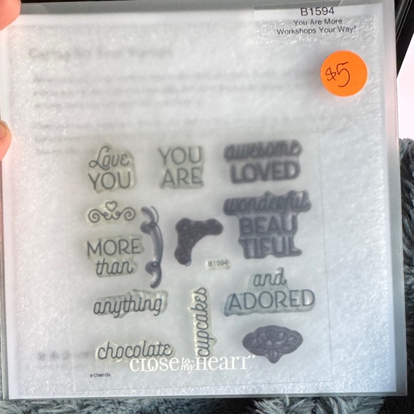 Enhance your crafts with Close to My Heart sentiment stamps. These gray stamps add a personal touch to any project.