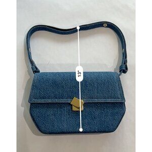 Shoulder bag made of denim with adjustable strap and metal buckle, made in Portugal. The bag has an inner pocket with a Closed badge. Embossed with our logo on the front and decorative stitching on the edge of the bag.