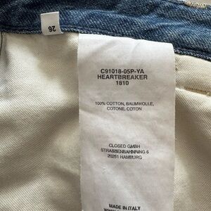 THE HEARTBREAKER JEAN IN STARS BY CLOSED ARE A CLASSIC 5-POCKET GIRLFRIEND STYLE THAT HITS MID-WAIST, WITH A STRAIGHT CROPPED LENGTH. FINISHED WITH STARS LASERED ALLOVER, USED POCKET EDGES, AND LINED YOKE WITH LEATHER PATCH.