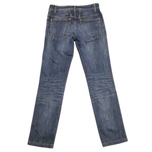 Stylish denim blue jeans, size 25, made in Italy, perfect for casual outings. These high-quality jeans offer a comfortable fit with a touch of elegance. Ideal for fashion-forward individuals looking for a timeless piece to add to their wardrobe.