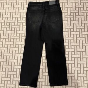 A black wash adds to the wear-anywhere vibes of easy-fitting raw-hem jeans made from low-stretch denim.