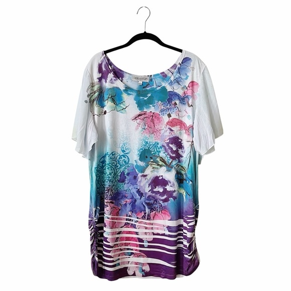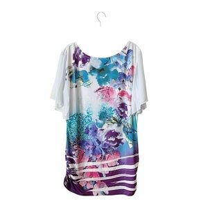 Closet Full Top Womens Size XL Multicolor Floral Sublimation Ruched Flare Sleeve