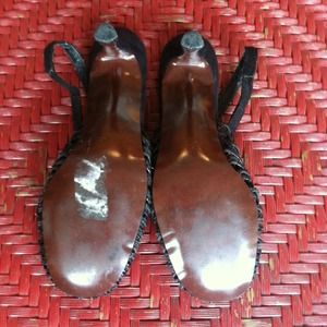 Closet Is Closed Purchased in SoHo for $280! I ❤ these heels but they've stayed tucked away in the back if my closet-only worn once-look at those shiny soles! The white is the tag BTW These heels are so unique & have a chic, yet vintage feel. Perfect for Spring & Summer!