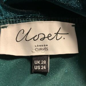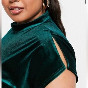 Closet London Plus velvet mini dress in emerald green. Split sleeve detail. Pull on style. Excellent used condition. Size 24. Armpit to Armpit 28 inches. Shoulder to Hem 40 inches.