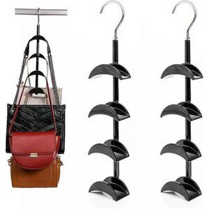 🧿Purse organizer for closet:Purse hanger closet with 360-degree swivel hooks that can be staggered front to back, you can quickly put your bag back in and take it out, minus the hassle of life, and the 4 hooks can neatly organize and tidy up bags.Purse hanger saves space.The purse organizer for closet is the ideal solution for bag organization. The bag holder can hang bag straps up to 1.57in in width, suitable for most bags . Available in white and black