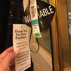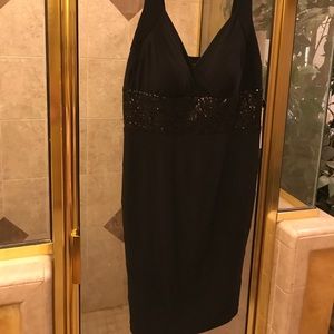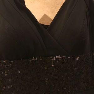 Has sequin on the waist. Zips at the side. This dress falls above the knee. Stretchy material. New with tags.