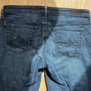 Super cute hearts dyed throughout these soft and comfy Adriana Goldschmied skinny leg jeans. Make your butt look great! No noticeable wear other than broke-in softness you can feel. Intentional fading of the heart of the back. Low-ish rise, regular inseam.