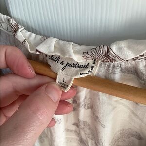 This Cloth and Portrait maxi dress in size Large features a V-neckline and button closure, making it suitable for various occasions including travel, parties, casual outings, workwear, and business events. Made from rayon fabric, the dress is lightweight, breathable, and accented with tiers, ruffles, and a belt for a bohemian and exotic look. With a safari animal print pattern, the dress depicts characters like Bohemian, Expedition, and Explorer