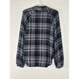 Cloth And Stone X Evereve Luxe Plaid Button Down Smoke Lurex Pucke NWT Soft