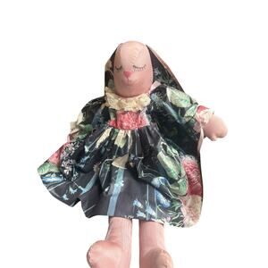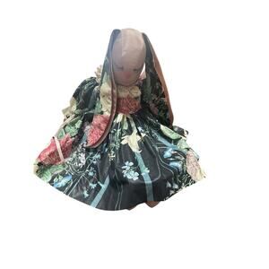 Cloth Bunny Rabbit Doll in Black Floral Easter Dress