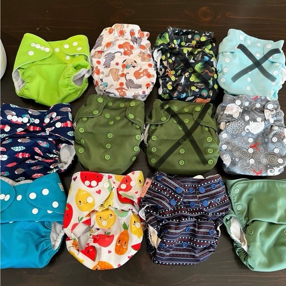 9 cloth diapers-3 Smart Bottoms, 1 Grovia, 1 Petite Crown, 4 Alva Baby